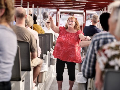 Normalt fortæller guiderne om alt det, du ser, når I sejler gennem Københavns inderhavn og kanaler. Men dét gør jeg altså ikke........... I stedet skal I høre fabelagtige, fantastiske og finurlige historier om middelalderens og renæssancens havneområder.